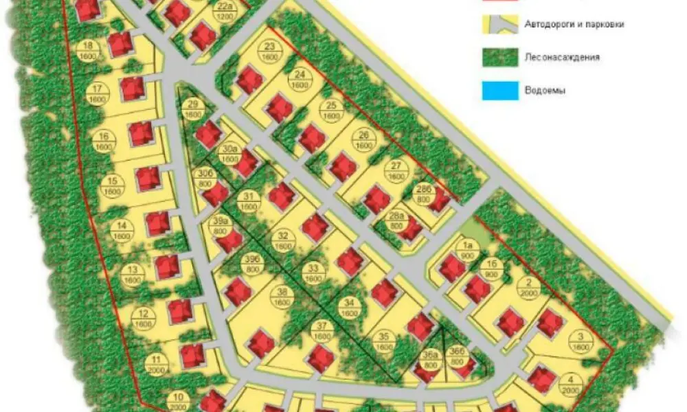 В посёлке 50 участков до 20 соток с подведенным электричеством (10 кВт), водой и газом. Часть участков примыкает к лесу. Территория - с асфальтированными дорогами и под круглосуточной охраной.
