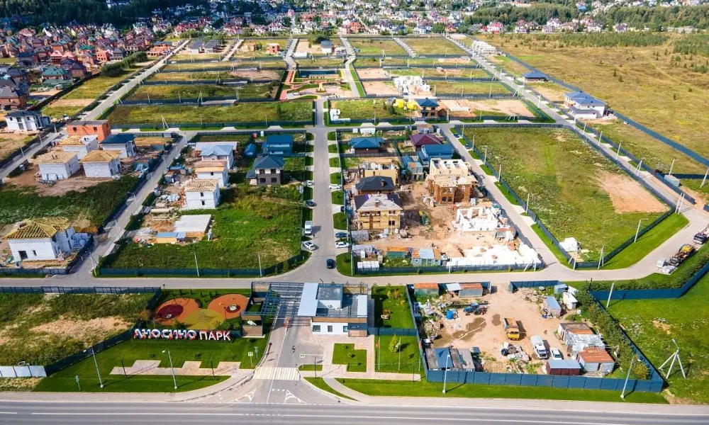Дизайнеры тщательно поработали над внешним обликом посёлка “Аносино Парк”. Его улицы оформлены в едином стиле. Благодаря обилию ярких оттенков они будут выглядеть нарядно даже зимой, даря жителям хорошее настроение. Территоия коттеджного поселка - 25 гектаров, и она разделена на 316 участков (5-9 соток).