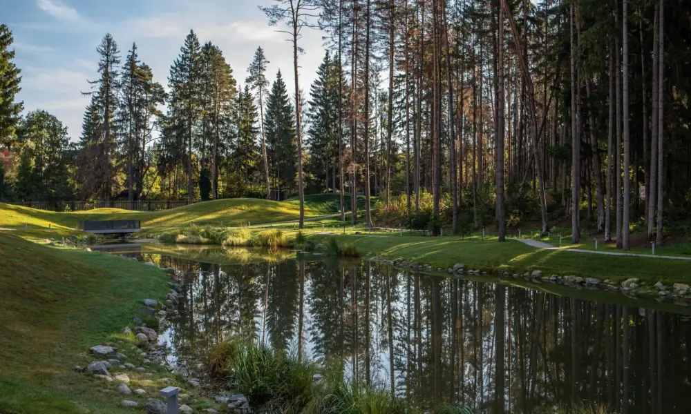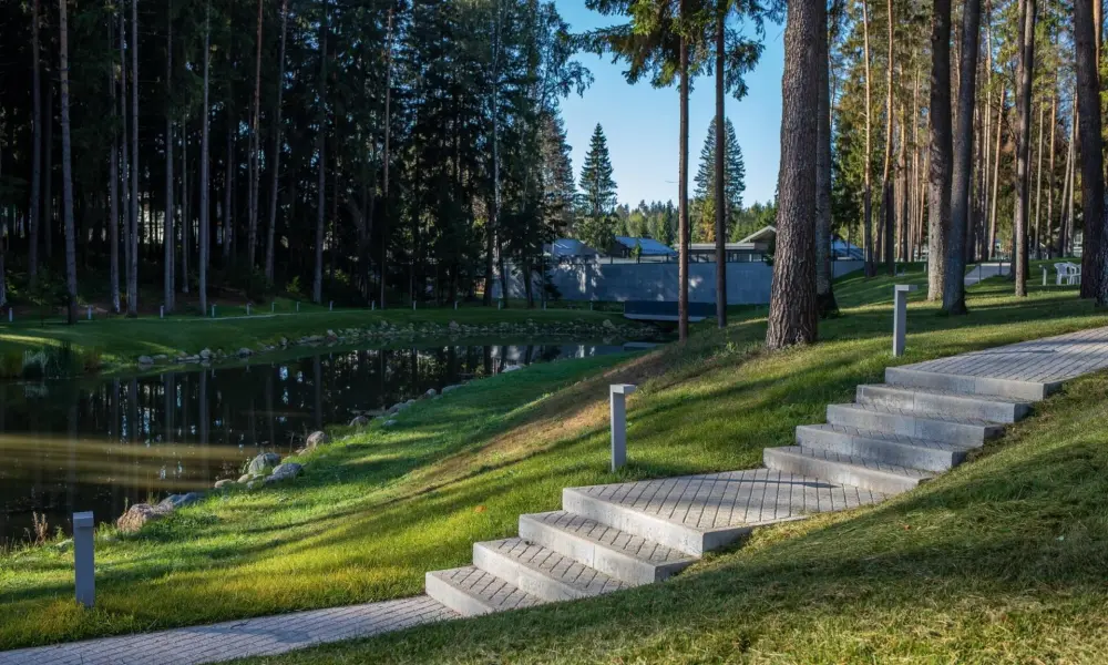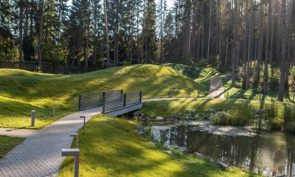 Парковая зона здесь занимает 7 гектаров. Зимой в посёлке работает большая ледовая горка для детей, а летом они смогут отдыхать в безопасных домиках на дереве. Им доступны также две детские и спортивные площадки.