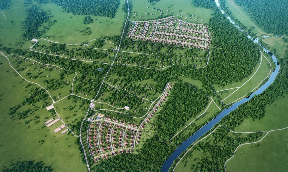 В посёлке – 2 квартала, разделённых лесополосой. Каждый участок – с готовым ограждением (коммуникации подведены). С участков – выход к реке, где есть пляж, пирсы для рыбаков и тропинки вдоль родников.
