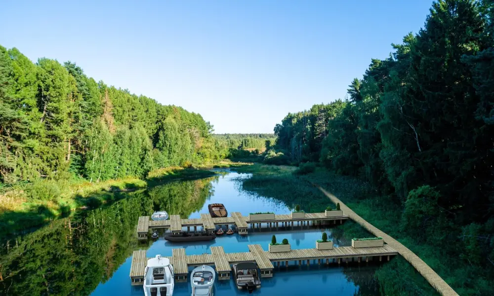 Площадь акватории водохранилища «Бережков Life» - 52 000 кв.м.: в курортной зоне стоят пляжи, пирсы, ресторан, обустроены места для спорта на воде (сёрфинга, вейк-бординга).
