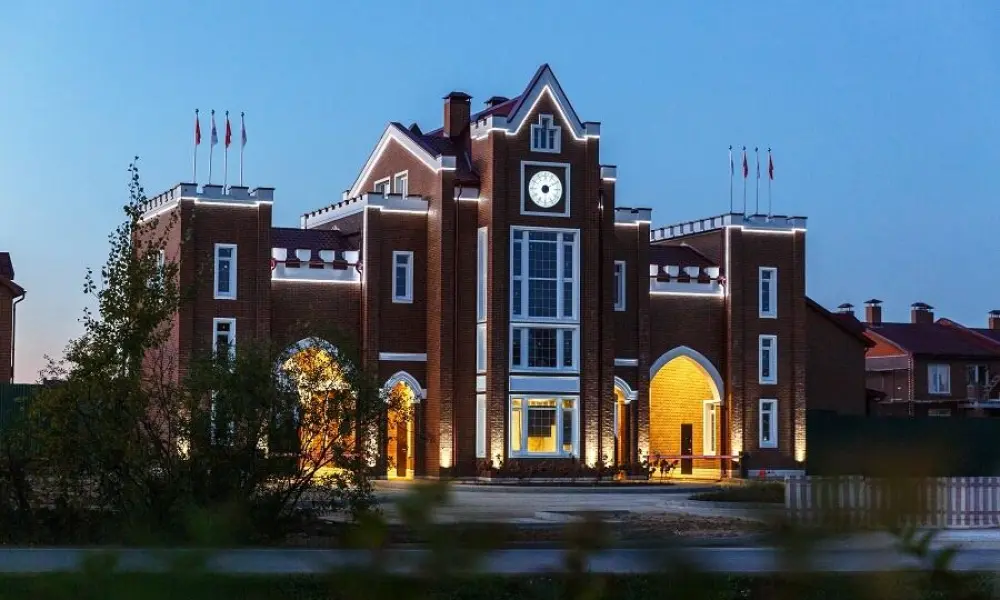 Кирпичные дома выполнены в едином классическом английском стиле. При строительстве использовались качественные материалы, как для фасада, так и для всех внутренней отделки. Внешние стены выполнены из кирпича или блоков Porotherm 44. Фасады сделаны из клинкерной плитки. В доме проведены все необходимые коммуникации: газ, свет, вода, электричество, интернет со скоростью 300 Мбит в секунду. Помимо этого, в каждом доме предусмотрен камин.