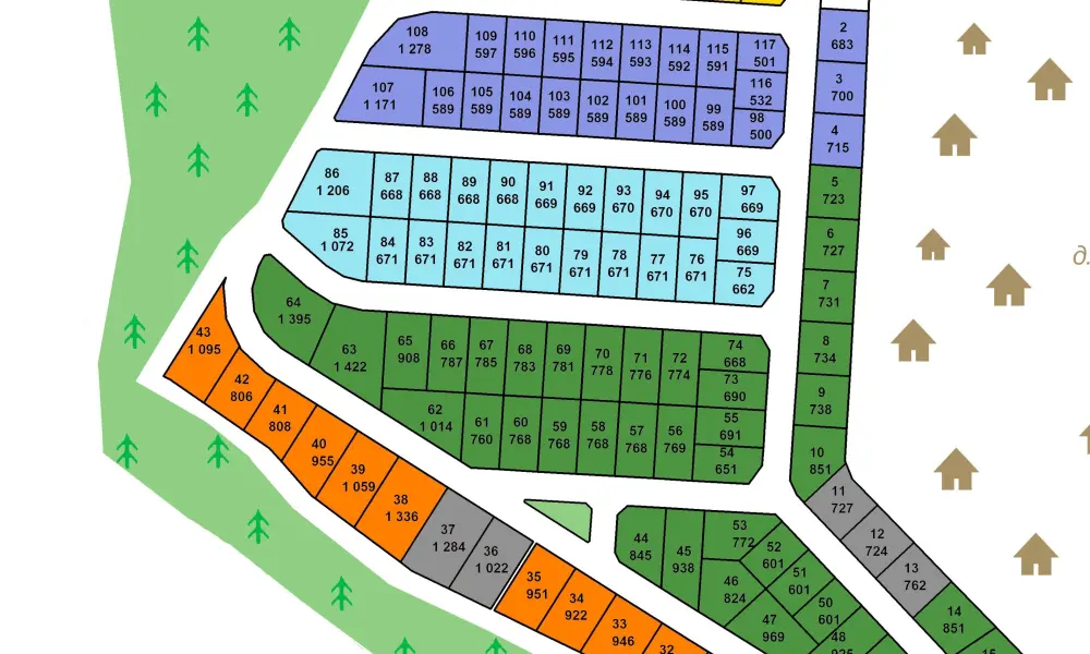 В посёлке – земельные участки от 5 соток без строительного подряда с подведённым электричеством. Созданы общественные зоны для спорта и отдыха с детьми, проложены широкие освещенные дороги до участков. Территория закрытая, круглосуточно охраняется. В лесной части посёлка расположено озеро. До берега водохранилища идти 10 минут.