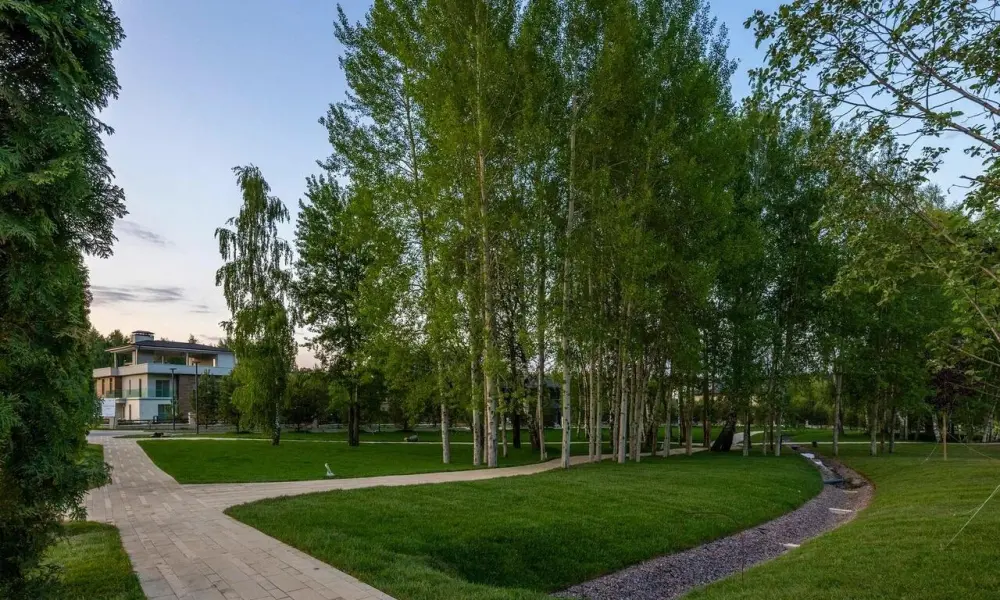 В этом КП передовые технологии архитектурного обустройства гармонично сочетаются с живописной местной природой. В результате получается место, где можно жить в роскоши и комфорте, при этом наслаждаясь натуральными красотами леса и реки.