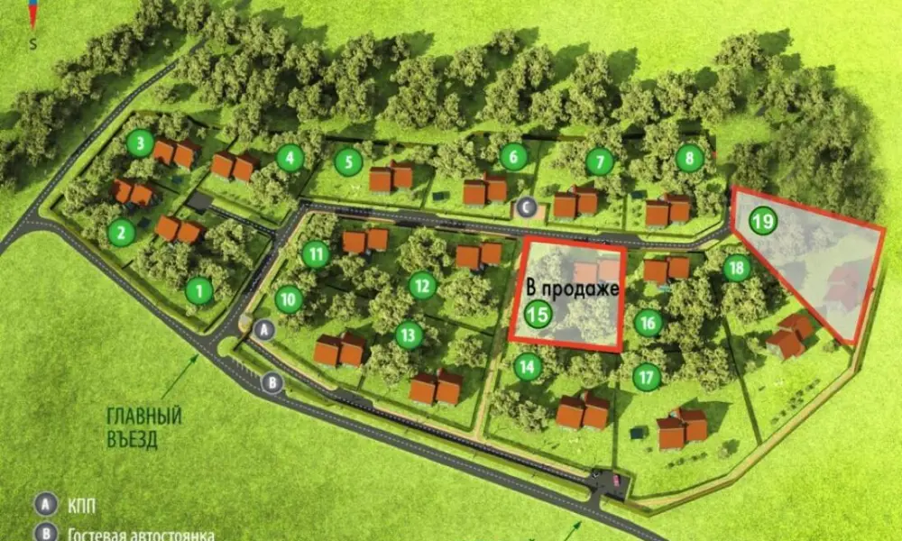 19 просторных участков (от 21,4 соток) с готовыми бревенчатыми домами, построенными по финской технологии, подходят для круглогодичного проживания (все коммуникации подведены). На закрытой территории 6,45 гектаров имеются детская площадка и гостевая парковка. Главный и запасной въезды в посёлок проходят через КПП с круглосуточной охраной.