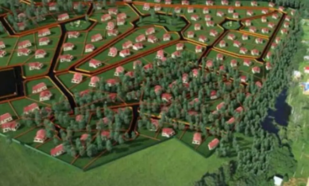 Тут находится 61 участок (площадь от 8 соток) с домами из экологически чистых материалов площадью от 200 кв.м. Подведены все коммуникации, территория огорожена, под охраной. На ней обустроены проездные асфальтированные дороги, тротуары, зелёные зоны для прогулок и игровые комплексы для детей, есть декоративный пруд.