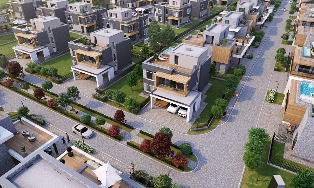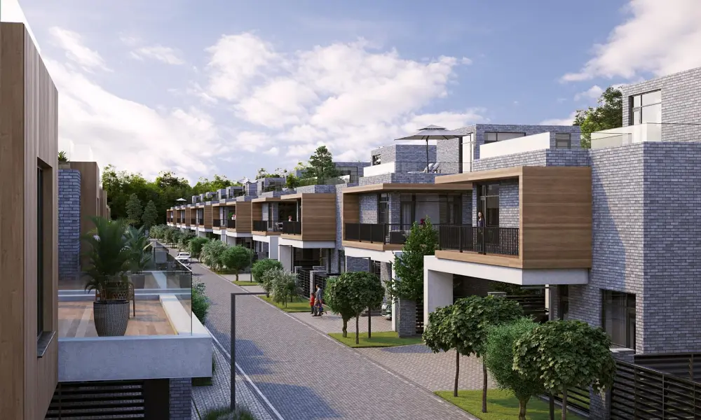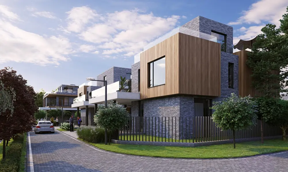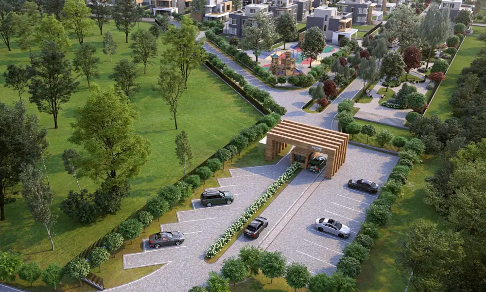 Коттеджный посёлок «Хюгге Хаус» уникален по своему внешнему облику. Все дома здесь возведены по принципам модернистской архитектуры Баухаус, созвучной с канонами скандинавской философии «хюгге». «Уют, который делает тебя счастливым» - так ещё называют это направление Баухауса. А в дословном переводе «хюгге» означает «благосостояние».
