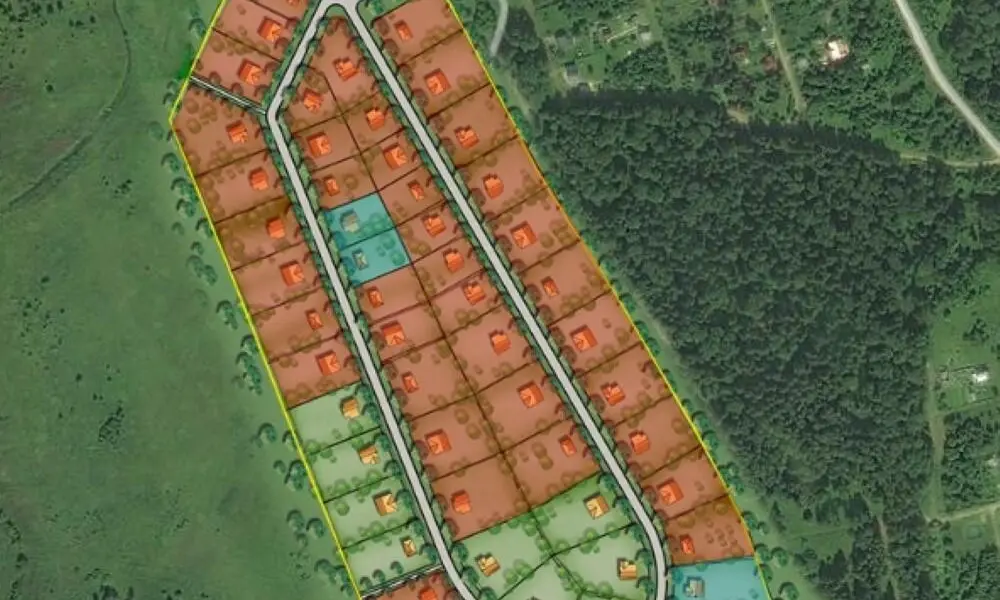 Коттеджный поселок разделен на 63 земельных участка площадью от 8 до 25 соток. По желанию собственников в поселок возможно завести коммуникации.