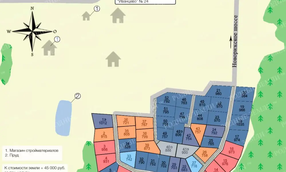 К поселку подведены коммуникации, он находится под круглосуточной охраной. Территория «Иванцево» разбита на 52 участка.