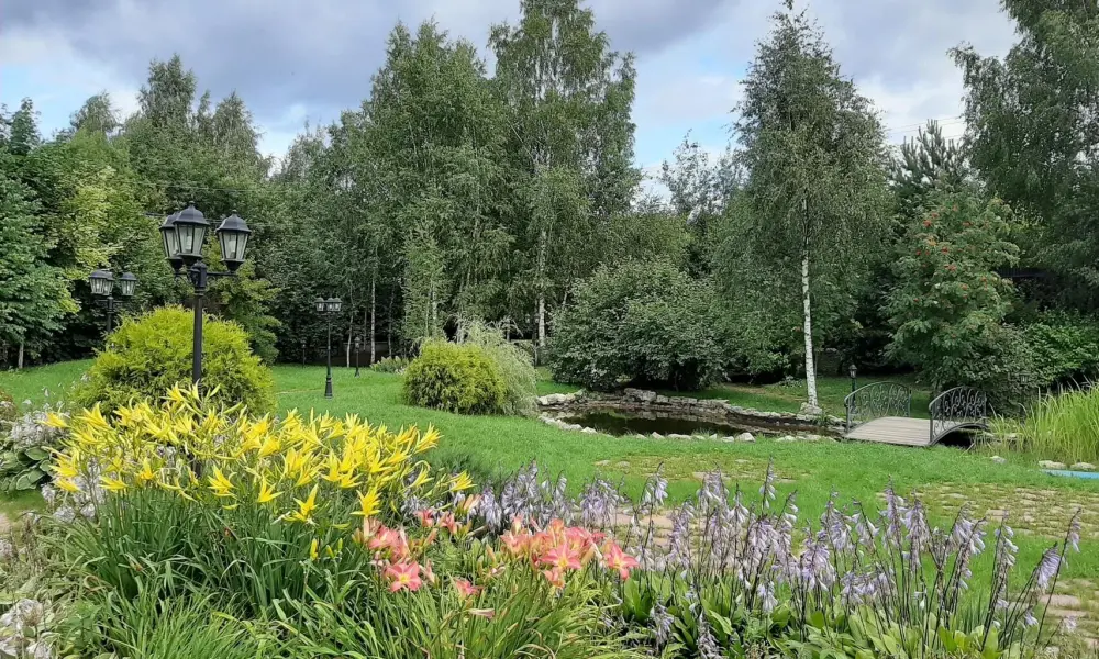 Непосредственно на территории предусмотрены уютное кафе, 2 детских площадки канадского типа с яркими качелями и каруселями, поле для командных спортивных игр, прогулочные аллеи и даже пруд для купания, где зимой обустраивается каток.