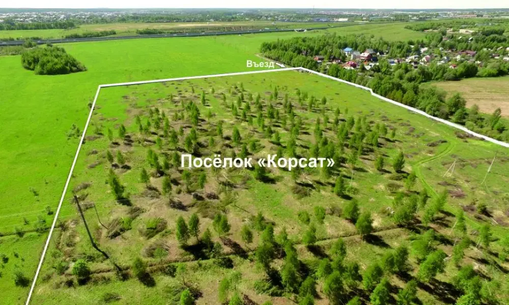 Участок в коттеджном посёлке «Корсат» можно приобрети как со строительным подрядом, так и без него. Территория огорожена и находится под охраной.