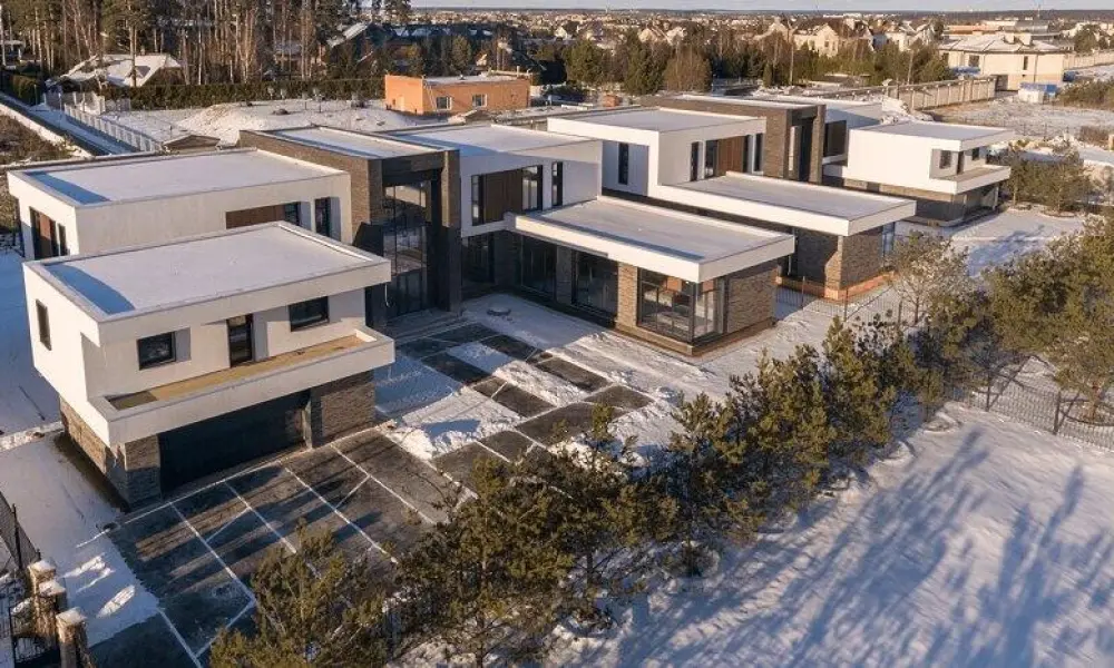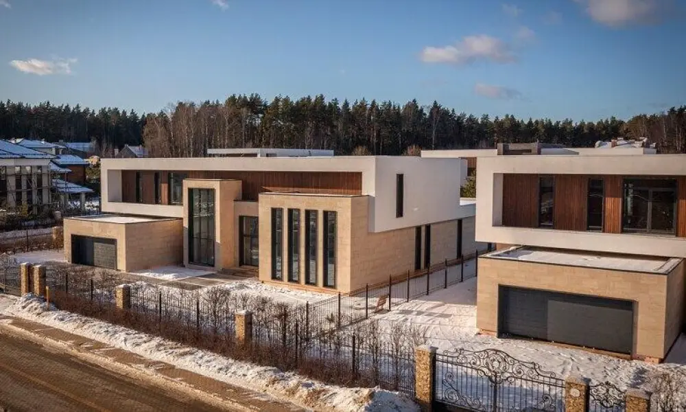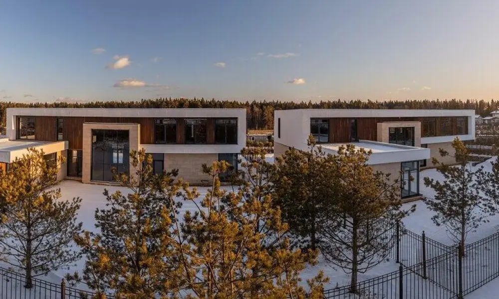 Коттеджи в стиле Райта имеют сплошное ленточное остекление, плоские крыши, их формы повторяют местный пейзаж. Площадь коттеджей – от 637 квадратных метров, дома со всеми коммуникациями, предлагается 4 проекта с возможностью индивидуальной планировки.