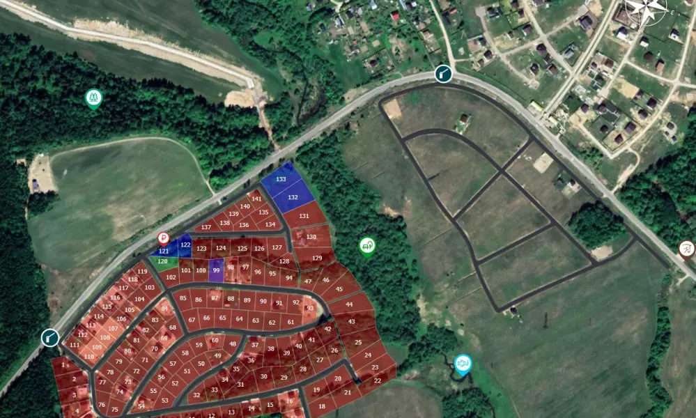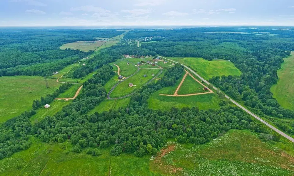 141 участок от 7 соток в «Леоново» – с готовыми коттеджами из натуральных материалов или под строительство (коммуникации подведены). Вдоль реки Раменка организована прогулочная зона.