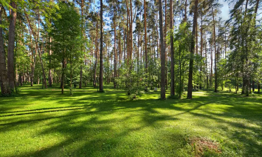Здесь хвойный воздух, спокойствие и звуки природы: лесной массив со всех сторон закрывает посёлок от населённых пунктов и дорог.