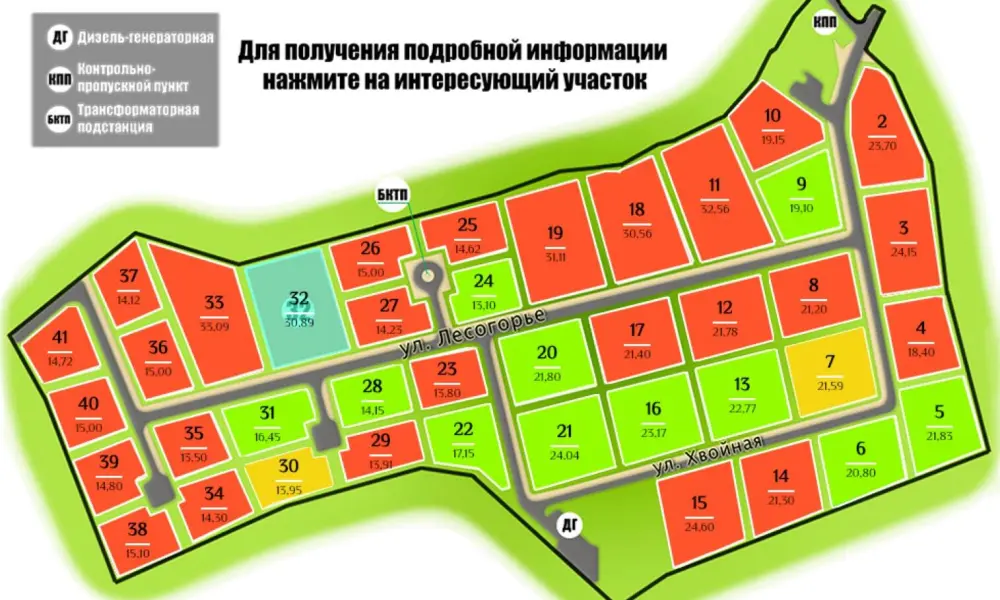 В генеральном плане – 41 дом. Подведены все центральные коммуникации. На территории посёлка заасфальтированы дороги и съезд на шоссе.