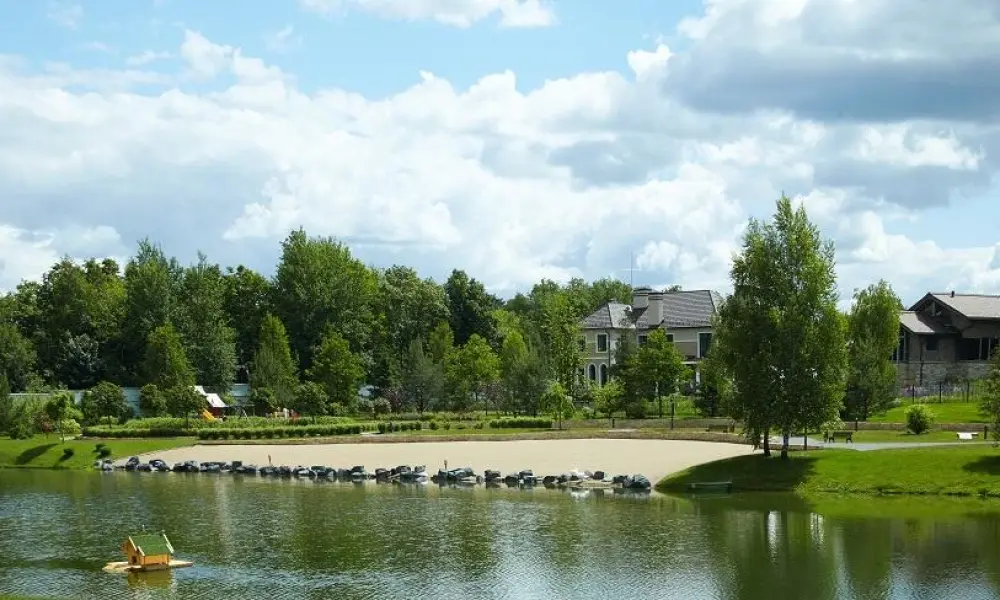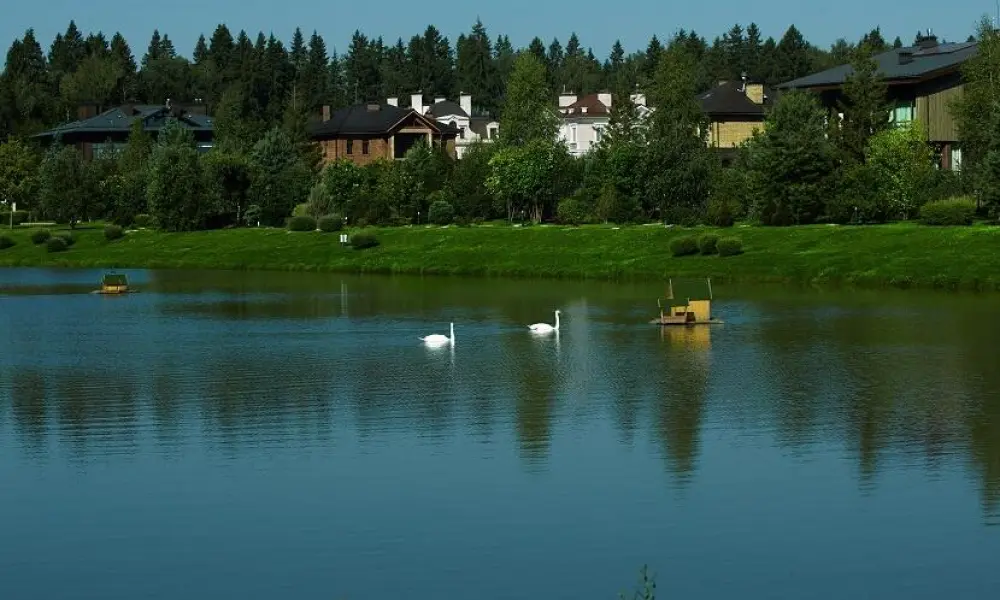 Дома в коттеджном посёлке оформлены в неоклассическом стиле. В КП есть живописное озеро, где обитают лебеди и утки. А в парке находятся беседки, клумбы с цветами и игровые локации для детей. Кроме этого, в коттеджном посёлке находится пляж.
