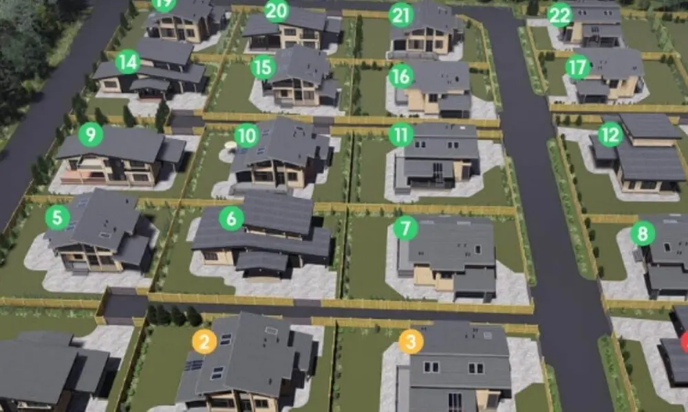К 22 участкам (7 соток) подведены центральные коммуникации, спутниковое ТВ и интернет. На участках уже построены деревянные просторные двухэтажные дома с террасами (204-233 квадратных метра) из клееного бруса (экологически чистый материал).