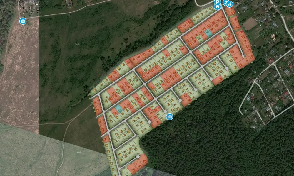 В посёлке – 129 участков от 6 до 14,5 соток (без ограничений по застройке) с подведённым электричеством и водопроводом (скважины и колодец).
