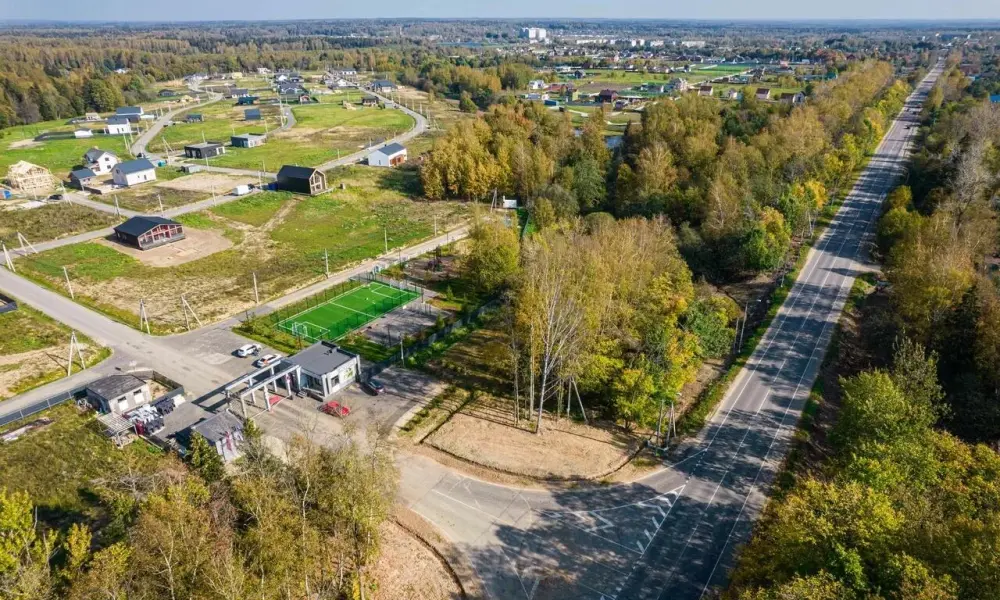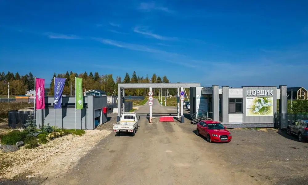 Жить в домах коттеджного поселка “Нордик” можно круглый год: предусмотрен комфортный съезд с трассы, широкие внутрипоселковые дороги и доступность общественного транспорта.