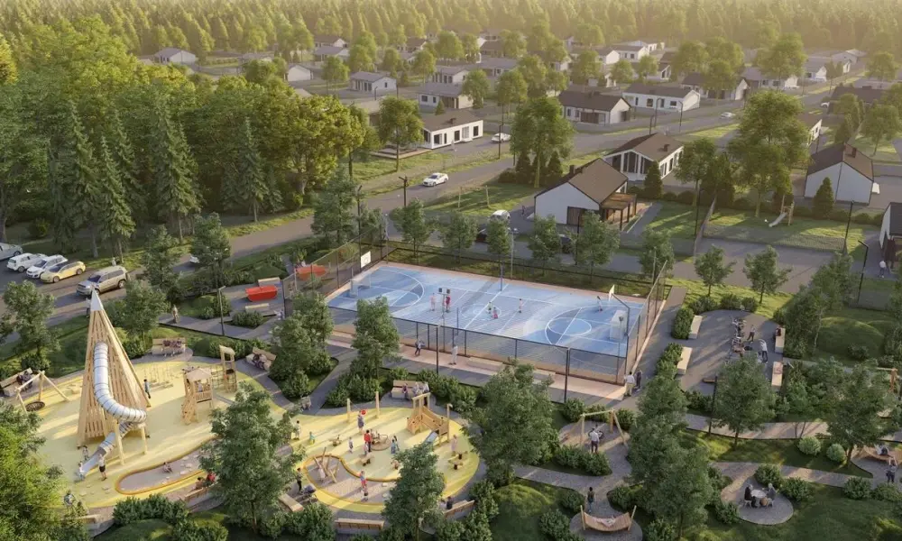 Поселок входит в систему «Нордик Land» и соседствует с другими входящими в нее поселениями. На территории этого кластера обустроена развитая инфраструктура. Она включает не только магазины, но и многочисленные спортивные зоны, места для семейного отдыха, площадки для детей. Также предусмотрено поле для мини-футбола, которое зимой трансформируется в каток.
