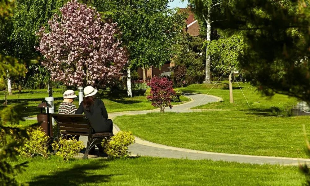 Новорижский КП известен идеально вписанными в природный ландшафт домами. Окруженный лесом и озером поселок создает благоприятную экологическую обстановку. Благоустроенная территория КП с несколькими бульварами вдоль домов, с аккуратными газонами, клумбами и беседками формирует прекрасное эстетическое восприятие. Помимо естественного природного пейзажа, на территории поселка есть три парковые зоны с водоемами, в одном из которых разрешено купаться. В парках есть места для развлечений и игр для детей и взрослых: отдельные площадки для волейбола и баскетбола, а также теннисные корты.
