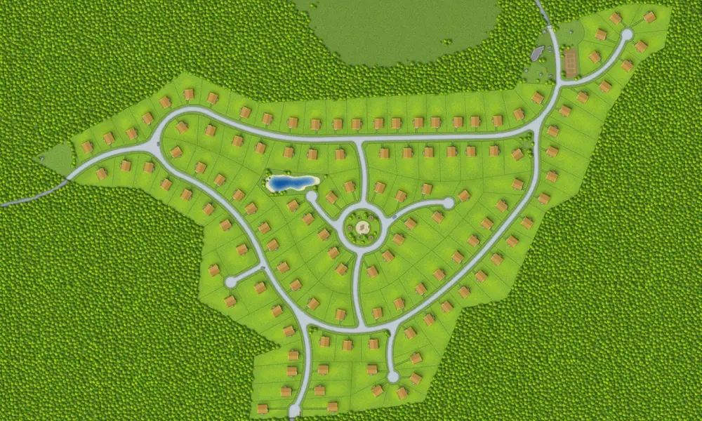 Для строительства была выбрана живописная равнина, которая окружена заповедными лесными массивами. На участки попадает много солнца, при этом с большинства из них открывается вид на близлежащие густые леса. Такая обстановка благоприятна для отдыха от шумного и загрязненного производствами города.