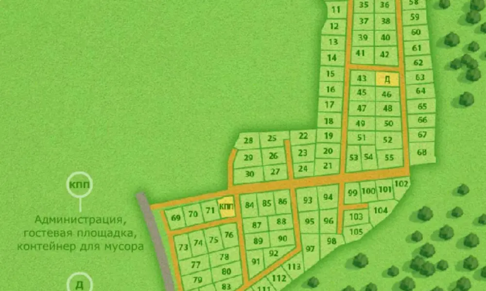В посёлке 113 участков (от 9 до 13 соток) под индивидуальное жилищное строительство с центральными водоснабжением, канализацией, электричеством, газом, стабильной мобильной связью и высокоскоростным интернетом.