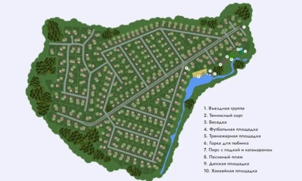 Безопасность поселка обеспечена его ограждением и регулярной охраной.
