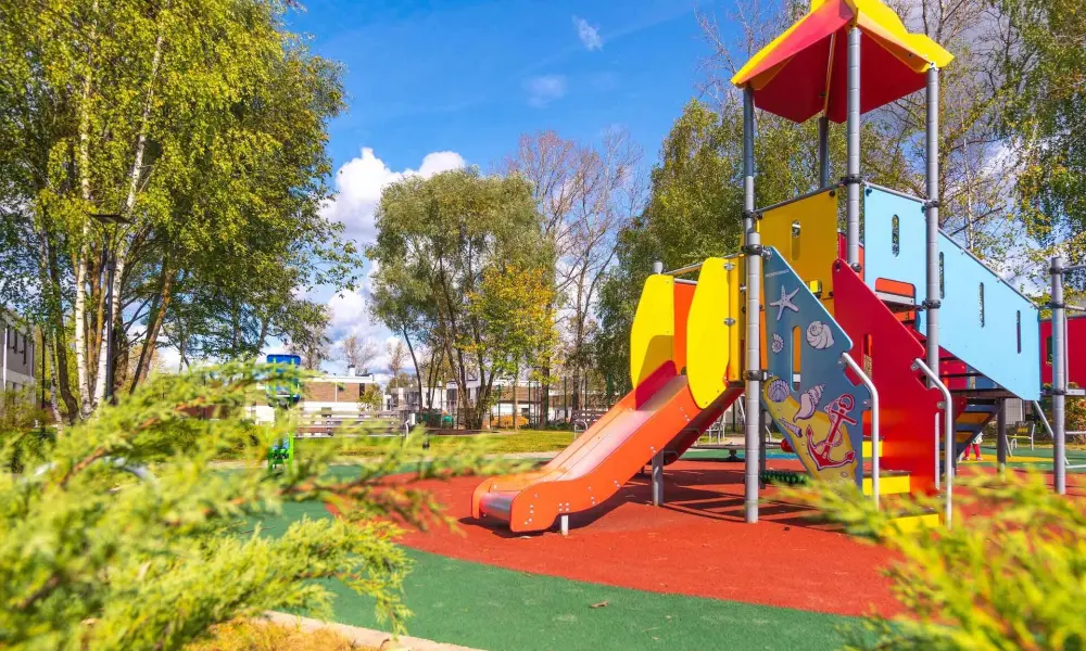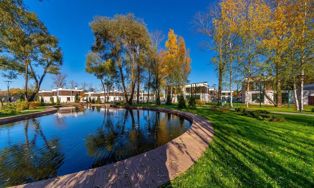 Этот посёлок сделан в виде зелёного квартала с благоустроенными лужайками, деревьями и кустарниками. Вокруг “Первого пионерского” находятся 1000 гектаров леса с дорожками для прогулок. Одна из аллей проложена вдоль всего населённого пункта.