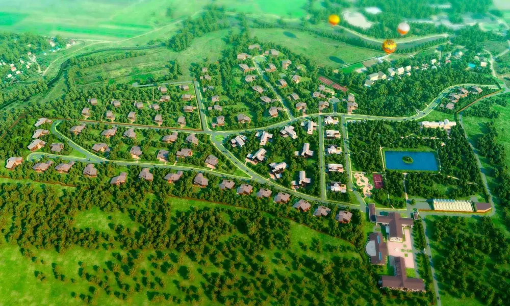 В поселке наблюдается необычный ландшафт: перепады высот в нем достигают 20 метров. За счет этого его облик выглядит оригинально и выделяется на фоне поселений с типовой ровной застройкой. Все дома в нем возведены по авторским проектам и представляют собой комфортабельные объекты, в которых удобно жить круглый год.