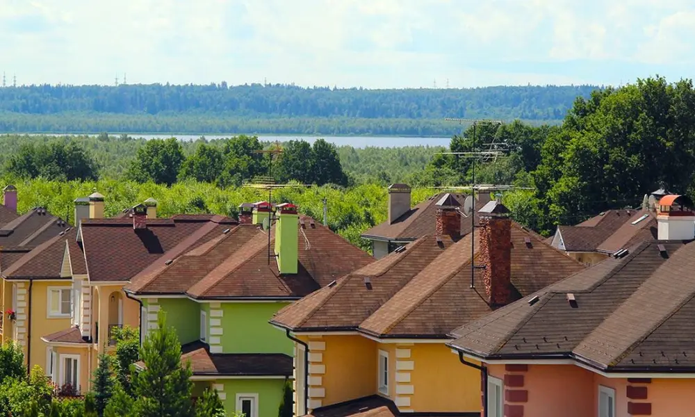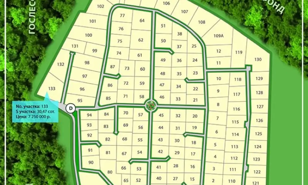 Здесь на 18 гектарах – 104 участка, большинство уже застроено. Участки без домов под строительство с коммуникациями (проекты может предложить застройщик), часть участков прилегает к лесу.