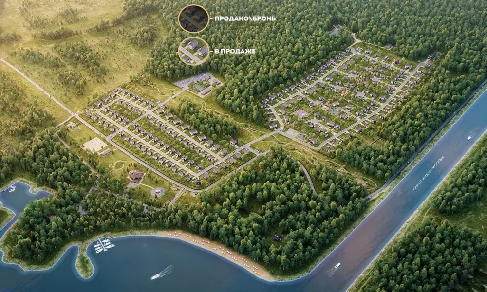 Коттеджный посёлок «Реки» стоит в экологически чистом районе в окружение сосен и водоёмов.