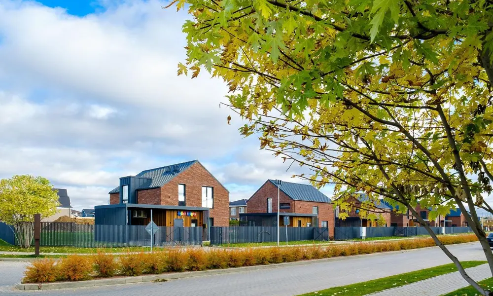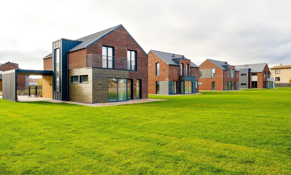 На 21 участке (6-8 соток) уже возведены двухэтажные коттеджи (142-200 квадратных метров) в стиле «барнхаус». Единый дизайн коттеджей из бельгийского кирпича с фальцевой кровлей гармонирует с природным ландшафтом. В строительстве применены энергоэффективные технологии, учтены высокие стандарты экологической сертификации. Коттеджи сдаются в отделке предчистовой и «под ключ».