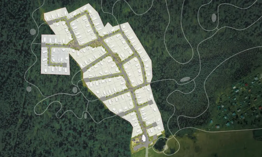 В разработке архитектуры проекта участвовала большая команда дизайнеров из нескольких бюро. Они создавали облик поселка с упором на современные тенденции в оформлении загородной недвижимости, при этом не забывая органично вписать их в природный антураж.