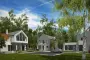 Архитектурное бюро разработало семь типов коттеджей разной площади от 115 до 234 м². Все они выполнены в едином стиле из керамического блока Porotherm. На выбор покупателям предлагаются участки земли до 12 соток, на котором и можно воспроизвести уже разработанный коттедж или же доработать его, исходя из собственных предпочтений. Дома имеют свободную планировку. Коммуникации заводятся внутрь, коттеджи сдаются без отделки. На территории участка можно также создать дополнительные постройки в том же стиле.