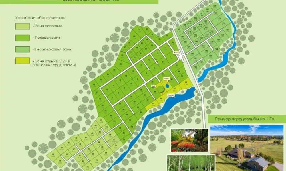 В данный момент в самом поселке отсутствует инфраструктура и продаются участки под строительство, но буквально через несколько лет на этом месте будет прекрасная застроенная территория, стоимость участков и домов в которой будет выше в разы. Посреди поселка планируется детская и спортивная площадки, прогулочная зона и уличный кинотеатр. В проекте - типовые заборы и кровля, чтобы поселок выглядел единым архитектурным решением.