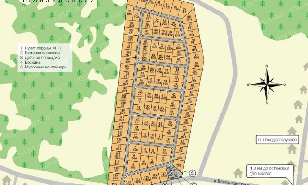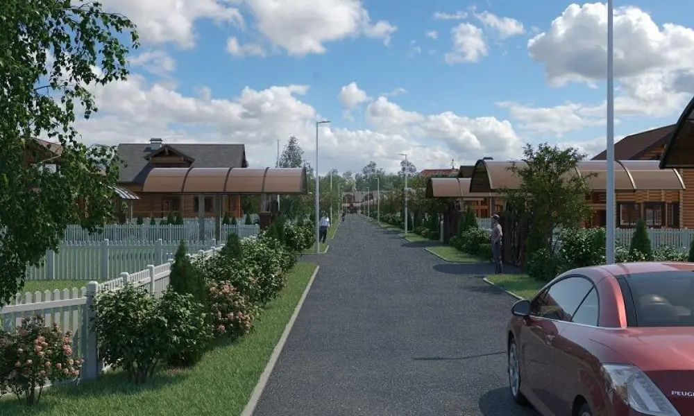 На территории посёлка расположены 125 участков (от 6,11 до 14 соток) под индивидуальное жилищное строительство без подряда (можно реализовать любой проект и прописаться в доме). При этом застройщик предлагает строительство 10-ти видов домов из бруса. К участкам подведены коммуникации: электричество 15 кВт, газоснабжение, водоснабжение, есть отопление. Можно подключить высокоскоростной интернет и спутниковое ТВ.