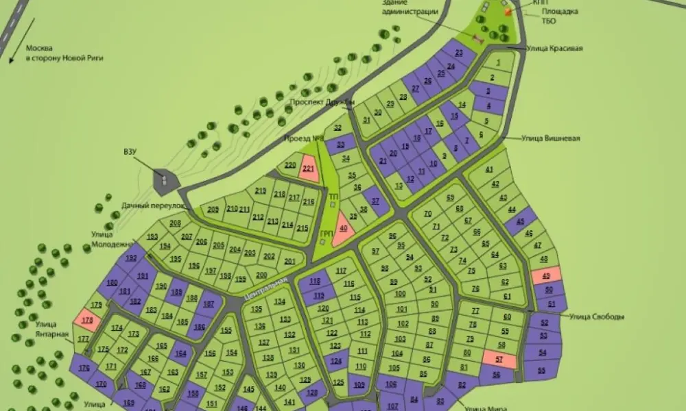 В поселке есть не только природные красоты, но и вся нужная для комфортной жизни инфраструктура. Все дороги в поселке заасфальтированы. К каждому участку уже подведены коммуникации: остается только возвести коттедж и обустроить территорию по своему вкусу.