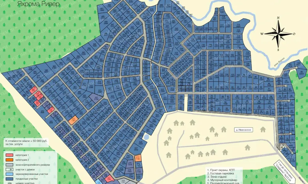 Здесь – 578 земельных участков от 6 до 30 соток с подведённым электричеством, водоснабжением из колодца или скважины и удобным подъездом (к посёлку подходит асфальтированная дорога, внутри – грунтовые дороги). Можно выбрать землю на равнине, холме или у леса.