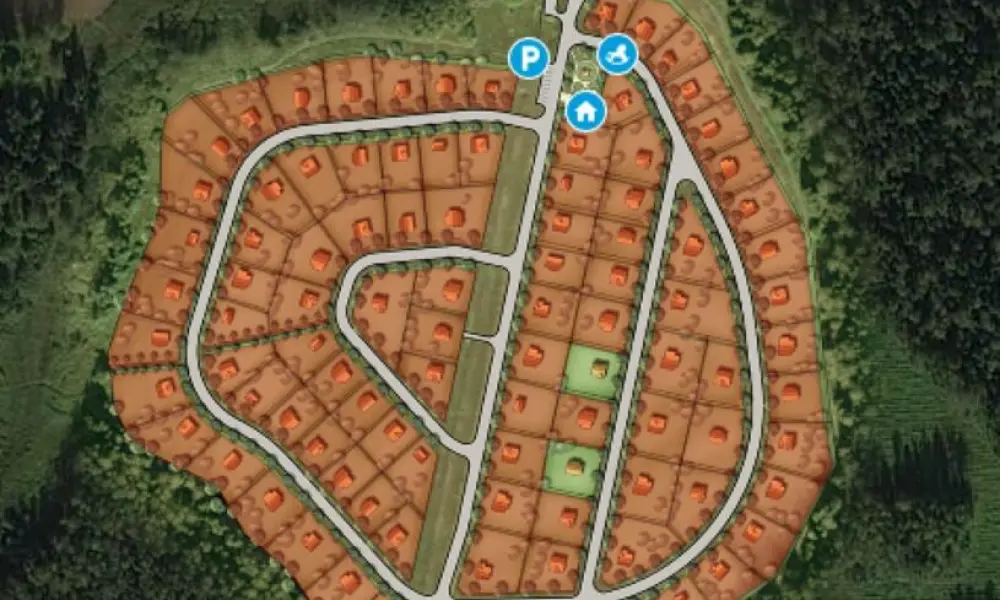 Территория посёлка разделена на 102 участка от 8 до 15 соток (под ИЖС без подряда с подведенным электричеством), между ними проходят дороги с твёрдым покрытием. Предусмотрены парковка, место для прогулок с детьми с игровым комплексом. Посёлок огорожен и находится под круглосуточной охраной.