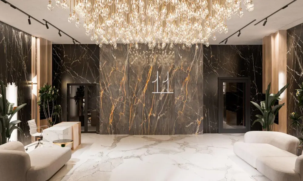 Еще несколько особенностей «Дизайнерского дома Eleven» - французские балконы с ограждением из триплекса, дизайнерские входные группы, в отделке которых использовались цветные металлы, керамика и натуральный мрамор, дизайнерская люстра из более 1500 составных элементов в зоне лобби, скоростные малошумные лифты, консьерж-сервис, двухуровневый подземный паркинг для 158 автомобилей с увеличенными размерами машиномест, кладовыми помещениями, автоматической мойкой колес на въезде и зарядкой для электромобилей, консьерж-сервис, концепция «двор без машин», закрытая для посторонних придомовая территория с детской площадкой и ландшафтным озеленением.