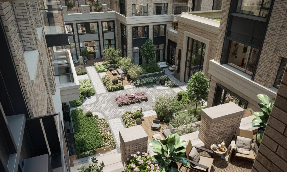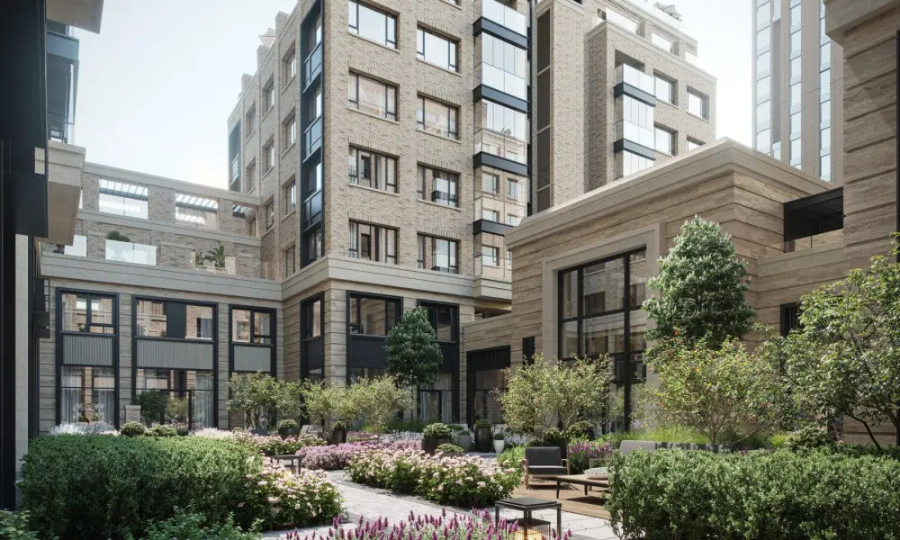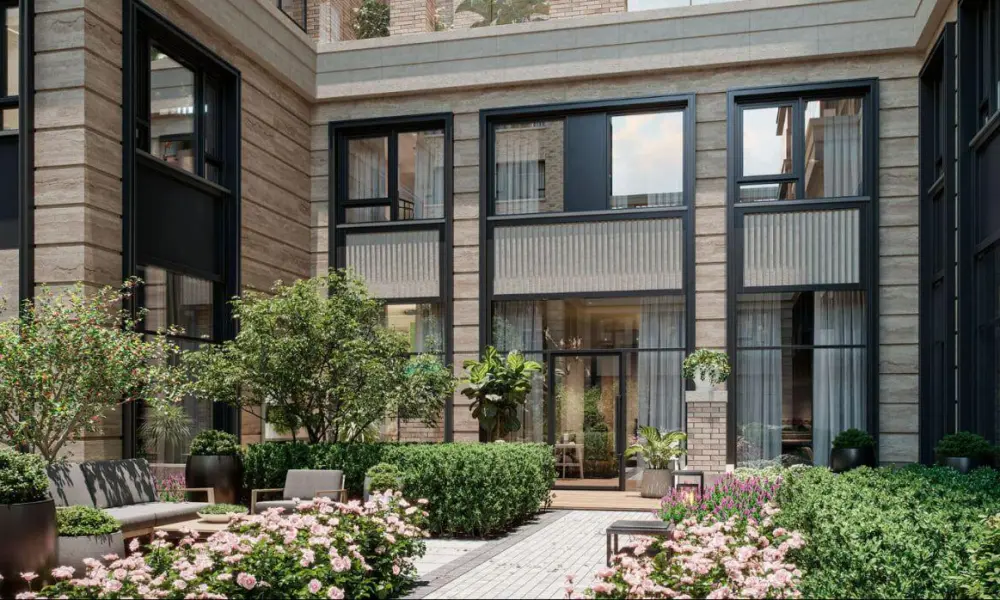 Приватные дворы Дома А отображают характер дома-сфинкса. В основе их образа — стиль ар-деко, который олицетворяет роскошь, индивидуализм и инновационность, утончённость и эффектность.