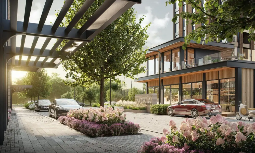 Ярким акцентом Дома А станет одноэтажное главное лобби со вторым светом в стиле классических американских отелей. С большим навесом до такси-поинта, с зоной ресепшн, большими витражами и элегантной lounge-zone. Эффектную композицию поддержит въездная стела напротив входной группы.
