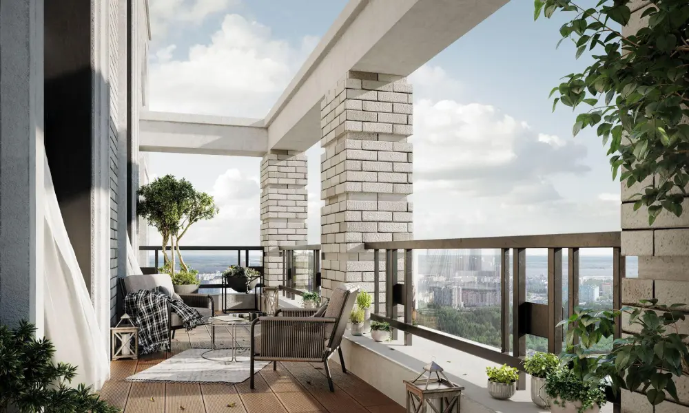 Внутренние пространства продолжат визуальную историю экстерьера: высокие потолки и прямые линии, обилие деталей, благородные цветовые решения с использованием природных материалов — дерева и керамогранита. Мягкие зоны, дорогой декор и произведения искусства. В основе концепции выдержанного в строгих геометрических формах интерьера — принцип симметрии.