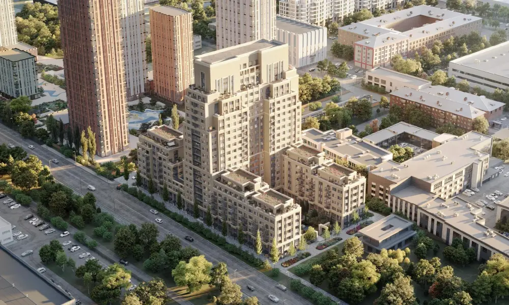 Дом А похож на древнеегипетского сфинкса — гиганта-стражника пирамид и фараонов. «Головой» его станет акцентная 22-этажная башня. Симметричные секции до девяти этажей, как лапы и тело изваяния, сформируют замкнутый контур квартала, в котором разместятся два приватных двора. А на открытой территории квартала спроектированы два павильона с кафетерием, детским клубом и летним кинотеатром.
