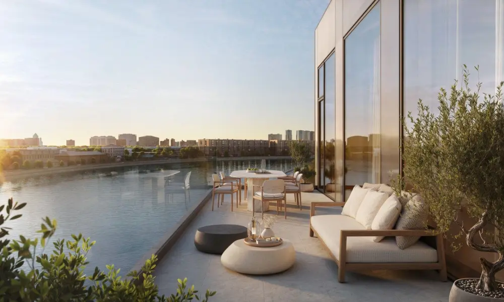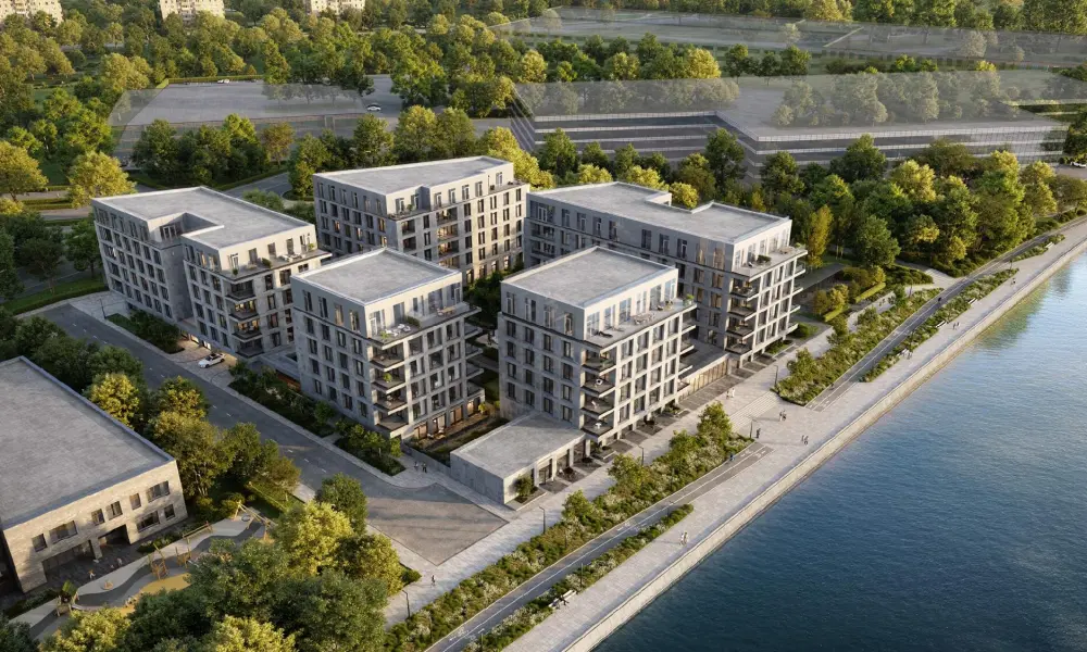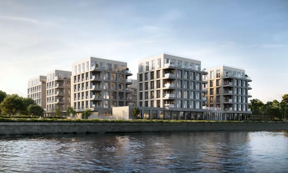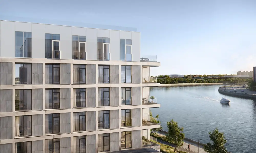 Малоэтажные корпуса квартала органично встроены в ландшафт Москвы-реки. Панорамные окна квартир впускают максимум воздуха и света, открывая вид на речные пейзажи.