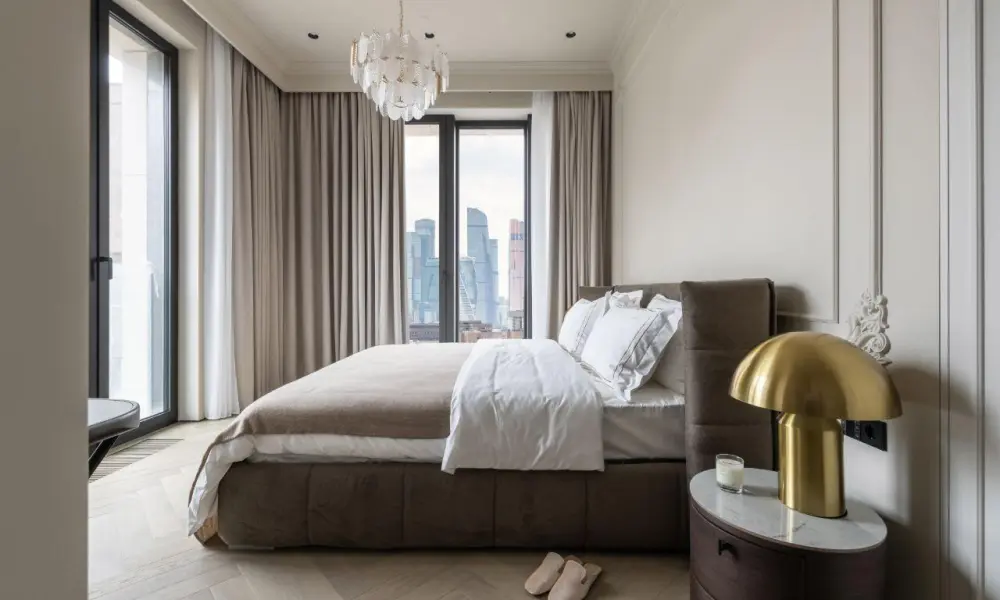 Высота потолков 3,2 м. в резиденциях и 4,4 м для пентхаусов. Панорамные окна 2,8 м. в резиденциях и 3,4 м для пентхаусов.