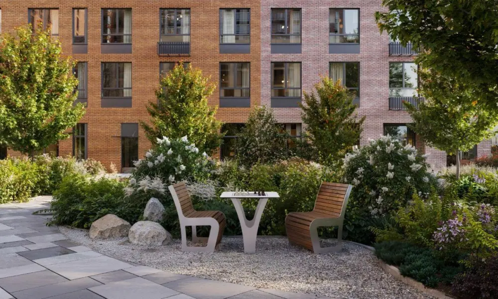 Дворы в «Квартале Домашний» — это отдельный приватный мир. Здесь вы спокойно поработаете в тени деревьев, погуляете по тихому бульвару, почитаете книгу под перголой или проведете чемпионат по настольному теннису среди соседей.