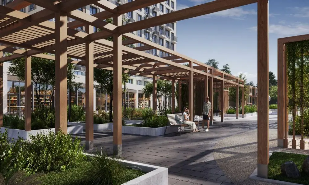 Погулять по пешеходному бульвару, покататься на велосипедах по специальным дорожкам, сделать тренировку в воркаут-зоне или почитать книгу на лужайке под деревом после работы — нужно только выйти во двор.