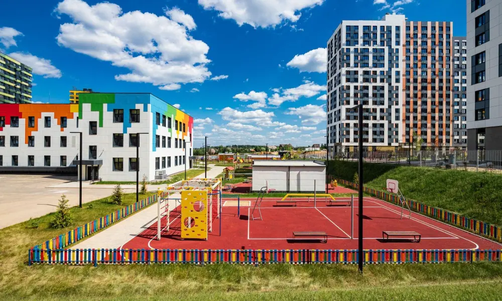 Модная архитектура, продуманные планировки, ландшафтные парки и благоустроенные дворы создают максимальный комфорт для жителей комплекса. Общая площадь инфраструктуры на первую очередь строительства составит более 8 тыс. кв. м. Особое внимание уделяется благоустройству и озеленению комплекса, под которое отведено более 80% территории комплекса.